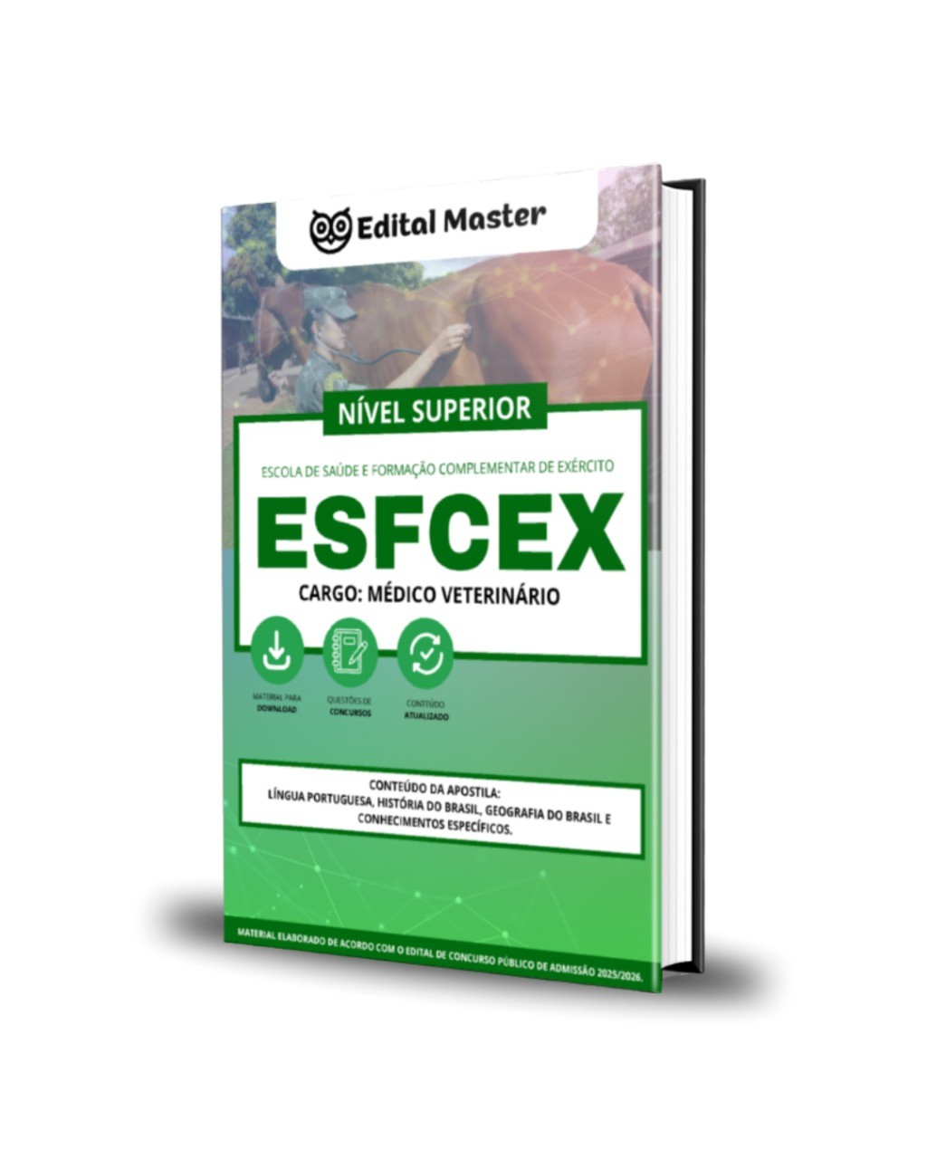 Chegou a hora de começar sua preparação! A Apostila ESFCEX - Médico Veterinário reúne conteúdo completo, questões gabaritadas e todos os tópicos mais importantes ao cargo pedidos pela banca VUNESP.