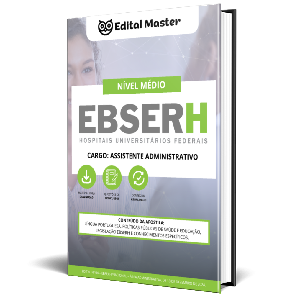 Atualizada conforme últimos editais, a Apostila Digital - Assistente Administrativo EBSERH reúne conteúdo completo , questões gabaritadas e todos os tópicos mais importantes ao cargo.