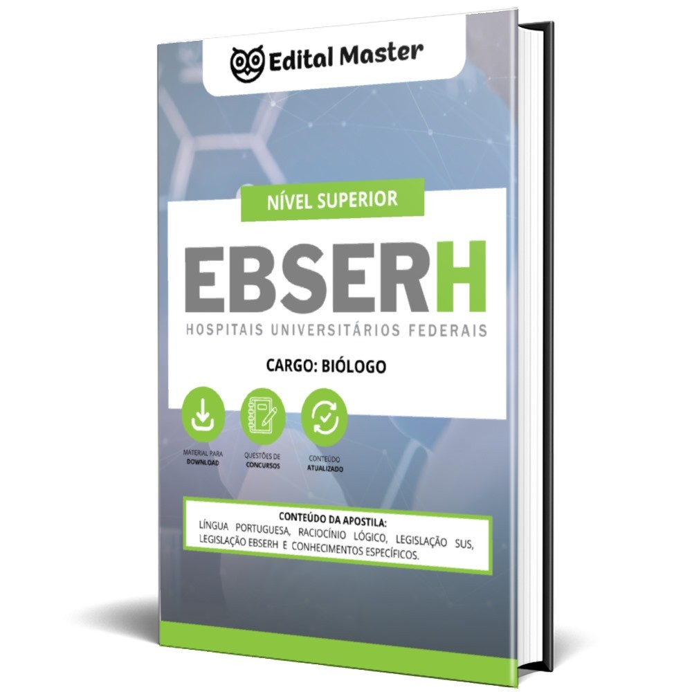 Atualizada conforme últimos editais, a Apostila Digital - Biólogo EBSERH reúne conteúdo completo , questões gabaritadas e todos os tópicos mais importantes ao cargo.