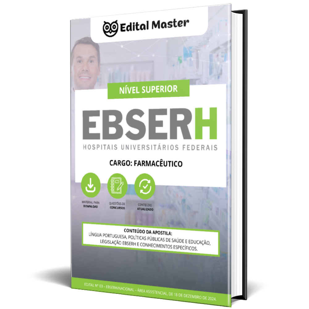 Atualizada conforme últimos editais, a Apostila Digital - Farmacêutico EBSERH reúne conteúdo completo , questões gabaritadas e todos os tópicos mais importantes ao cargo.