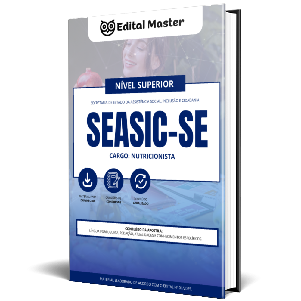 Atualizada conforme edital da banca FGV, a Apostila Digital - Nutricionista SEASIC - SE reúne conteúdo completo, questões comentadas, exercícios gabaritados e todos os tópicos mais importantes ao cargo.