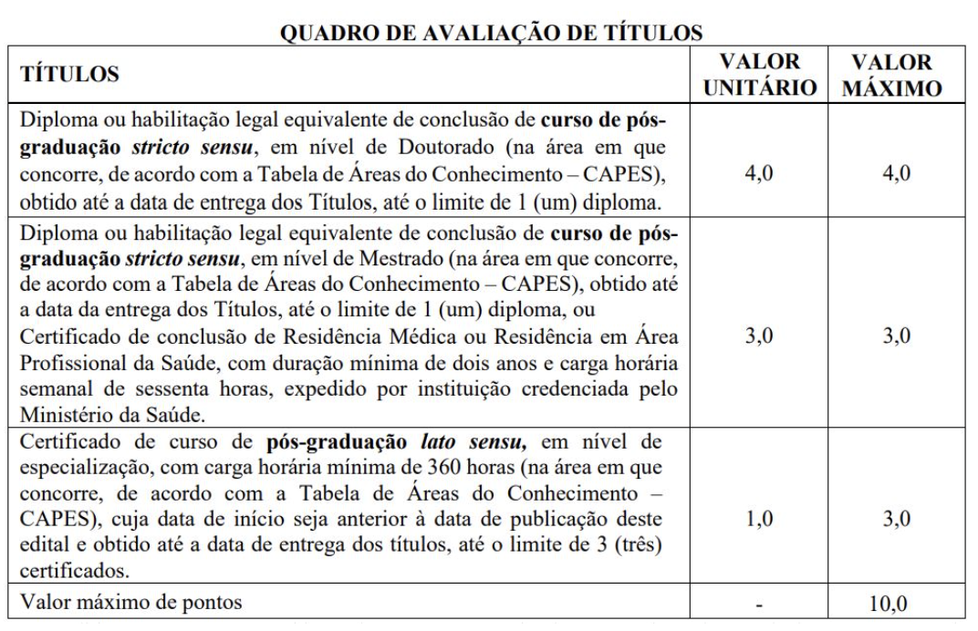 O concurso também contempla diversas carreiras de nível superior na área da saúde e gestão.