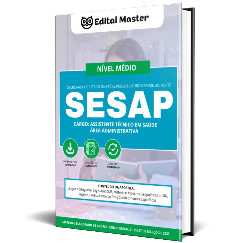 Chegou a hora de começar sua preparação! A Apostila Assistente Técnico em Saúde (Área Administrativa) - SESAP RN reúne conteúdo completo, questões comentadas e todos os tópicos mais importantes ao cargo pedidos pela banca IDECAN.