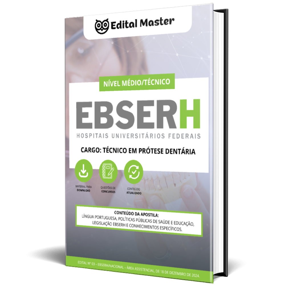 Atualizada conforme últimos editais, a Apostila Digital - Técnico em Prótese Dentária EBSERH reúne conteúdo completo , questões gabaritadas e todos os tópicos mais importantes ao cargo.