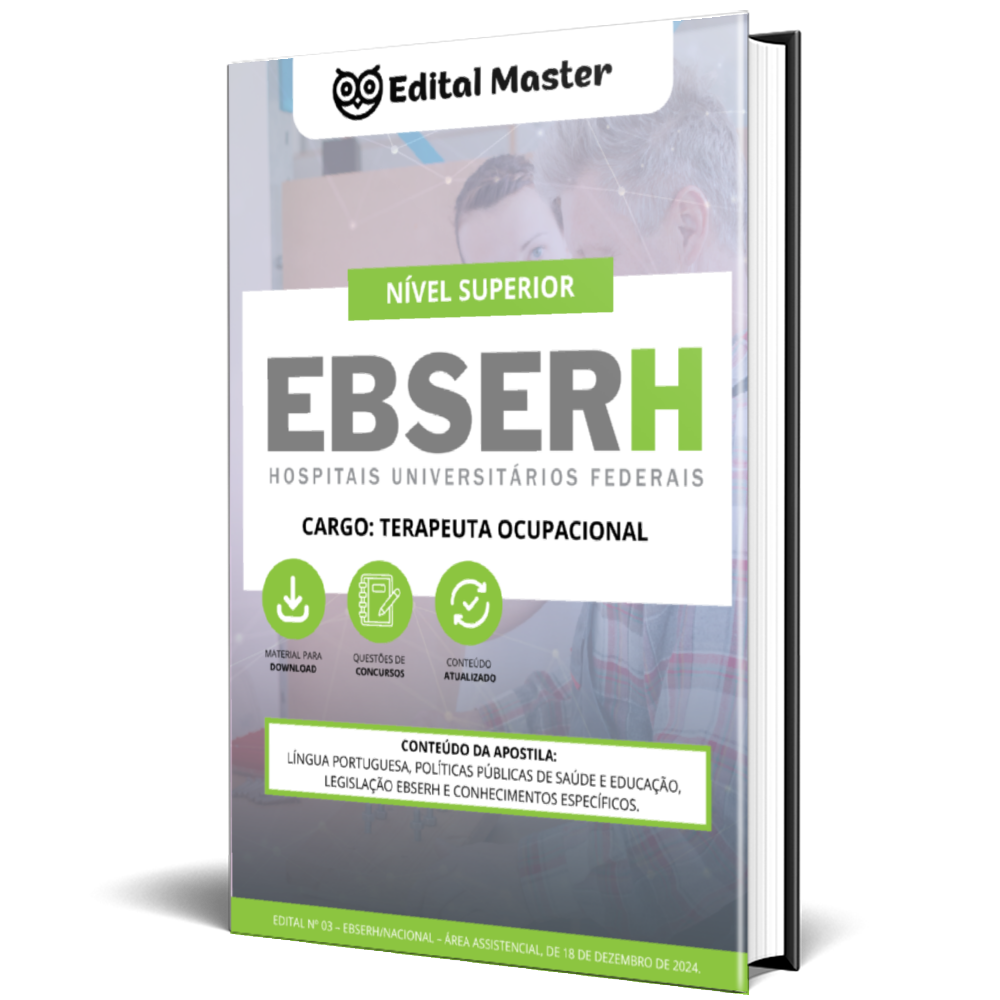 Atualizada conforme últimos editais, a Apostila Digital - Terapeuta Ocupacional EBSERH reúne conteúdo completo , questões gabaritadas e todos os tópicos mais importantes ao cargo.